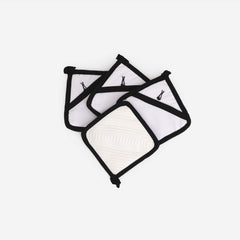For cooking made easy, reach for our 100% cotton and silicon potholders. Protect your hands when reaching for hot pots, pans, and bakeware. Or place them on your table and countertops for hot baking sheets, muffin pans, or roasting pans from the oven. The silicone side withstands high temperatures and provides a slip-free grip. Our Mini Pot Holders come in four fun colors and are durable, versatile, and machine washable.