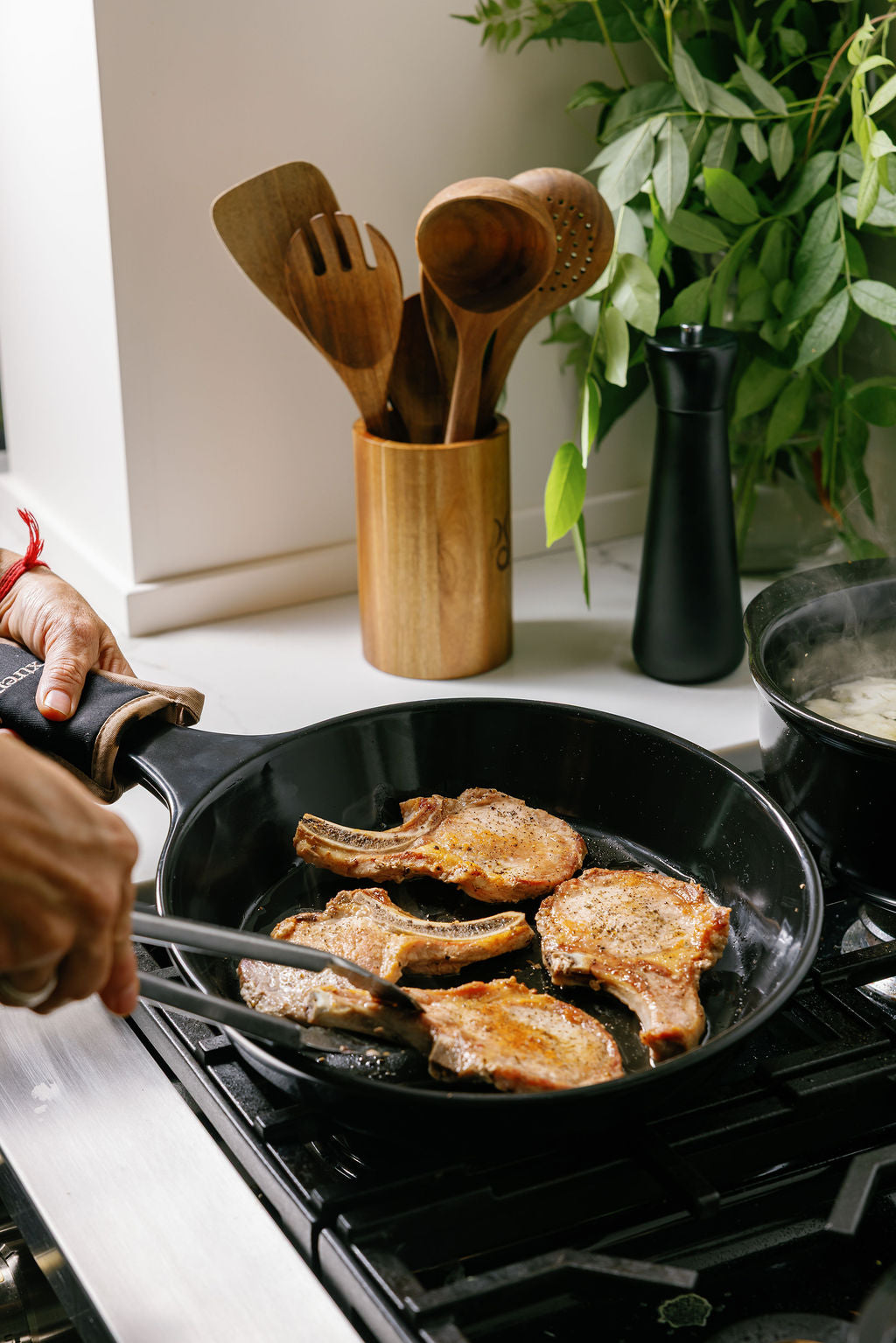 Unlike metal or non-stick cookware, pure ceramic does not leach heavy metals or unwanted toxicants into your food. With us, you’ll never find Teflon, PFOA, PFAS, non-stick coatings, or a metal core.