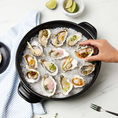 From braising to baking and everything in between like chilling fresh Oysters, our 100% ceramic Versa Pan does it all! If there is one piece of cookware you need, this is it. Never toxic and always handcrafted, our durable Versa Pan goes from the stove to the grill and even the campfire. Feel good knowing the food you serve your family every day is safe and free of harmful chemicals. Even better? Our Versa Pan is dishwasher safe! For Reference Oysters are being Chilled in 12-inch Versa (largest size)
